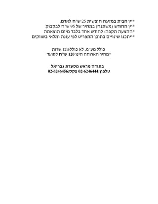 *ההצעה תקפה: לחודש אחד בלבד מיום הוצאתה