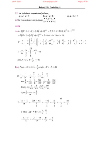 β) Να βρεθεί ο αντίστροφος του Α , ο αντίθετος του Β και να υπολογίσετε την