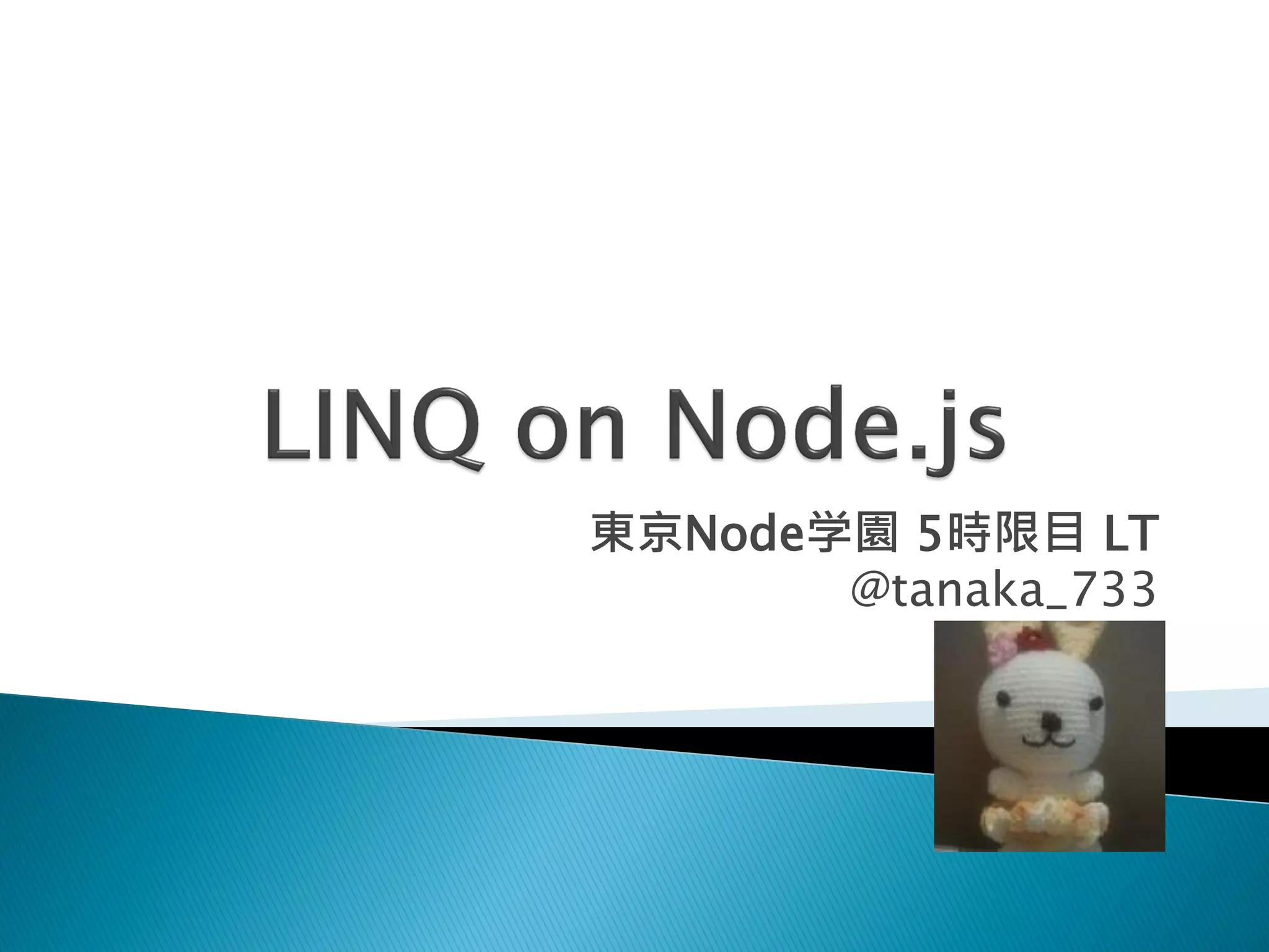 - LINQ for JavaScript ◦ http://linqjs.codeplex.com/ ◦ 作: neuecc さん Microsoft MVP for C# http://neue.cc/2011/08/22_340.html ◦ jQuery対応版とかも含まれてるよ CodeplexはMS系のOSSホスティング ◦ Gitにも対応したよ! 東京Node学園 5時限目 LT 2012/04/18