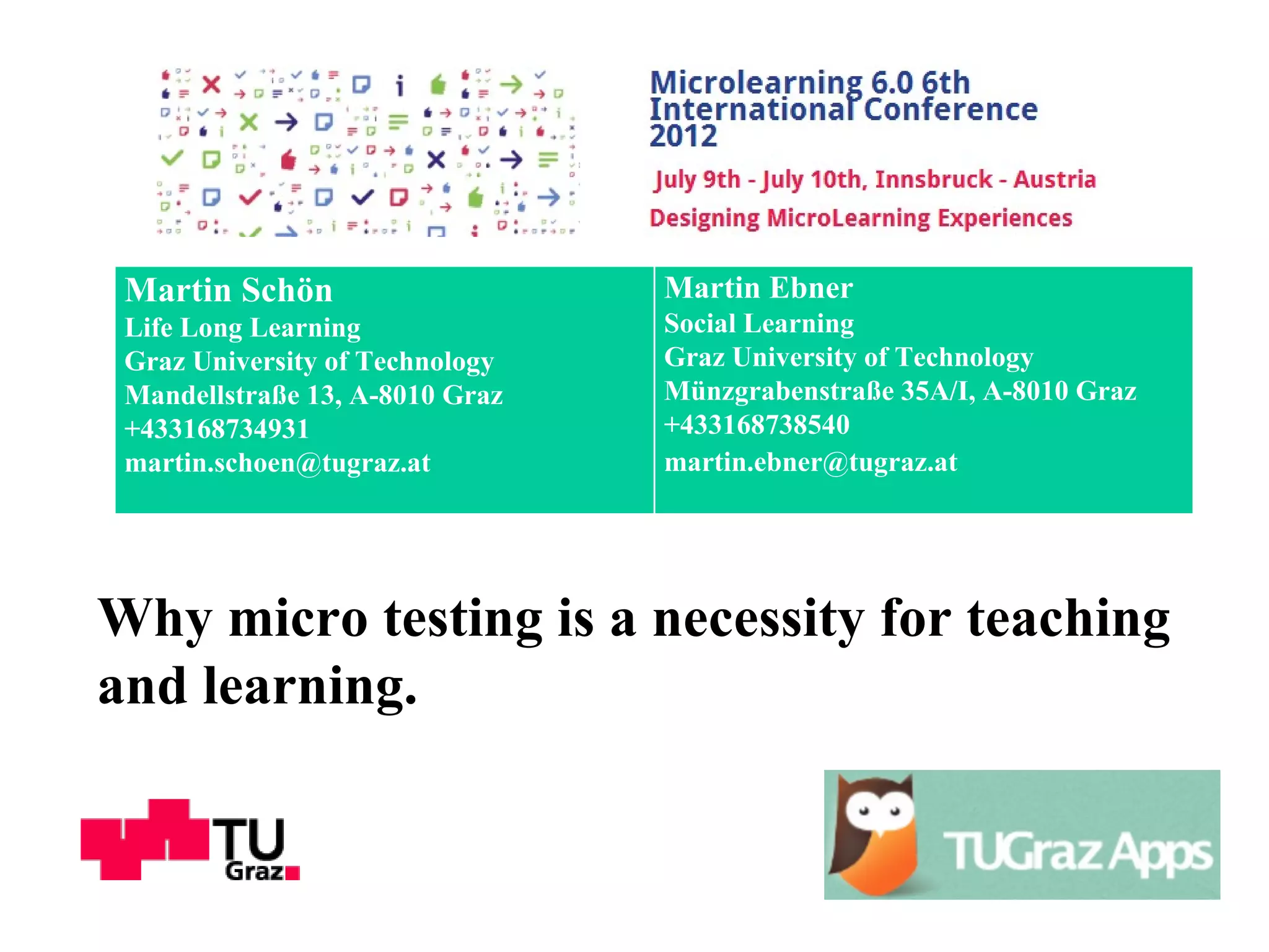 The document discusses a project aimed at enhancing teaching and learning through microlearning and learning analytics, specifically targeting the mastery of multiplication tables. It details the development of a web application for tracking student performance and adapting difficulty levels based on individual competence. The project was implemented in a primary school in Austria, resulting in positive engagement from students and valuable insight for teachers on learner performance.