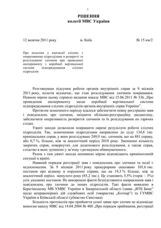 2011 року № 15км/2 „Про недоліки в узаємодії слідчих з оперативними