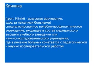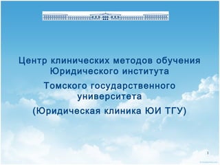 Документ описывает деятельность юридической клиники Томского государственного университета, которая объединяет медицинское и образовательное направления. Студенты, под руководством преподавателей, оказывают юридическую помощь населению, что способствует их обучению и профессиональному развитию. За 12 лет существования клиника помогла более 3000 лицам, предлагая услуги на бесплатной основе.