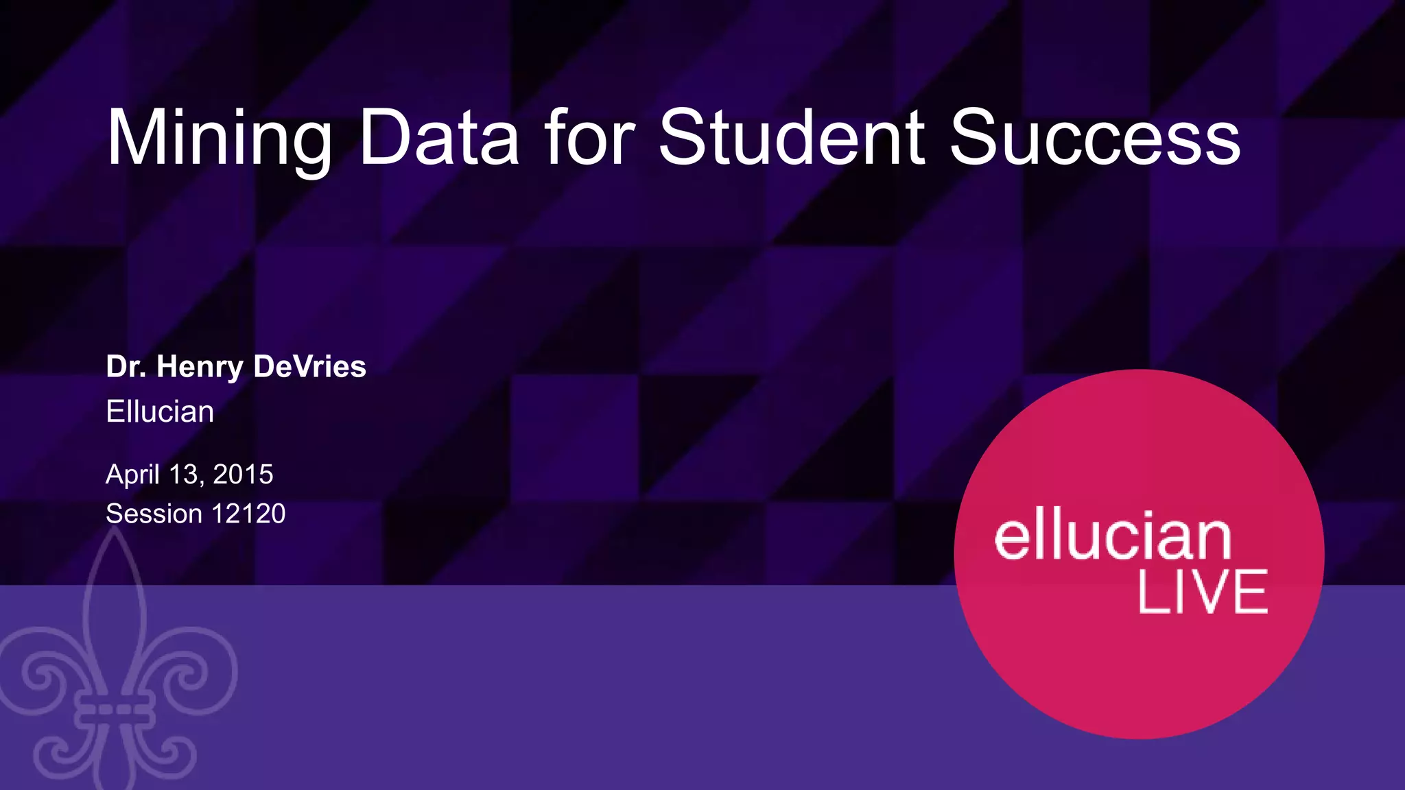 This document summarizes a presentation on mining student data to support student success. It discusses defining student success, common uses of student data in higher education, data mining and analytics. Examples are provided of how predictive analytics are being used at institutions like Purdue University and Rio Salado College to identify at-risk students and improve outcomes. The presentation argues that business intelligence tools can help institutions understand what factors influence student success, predict outcomes, and inform responses to support students.