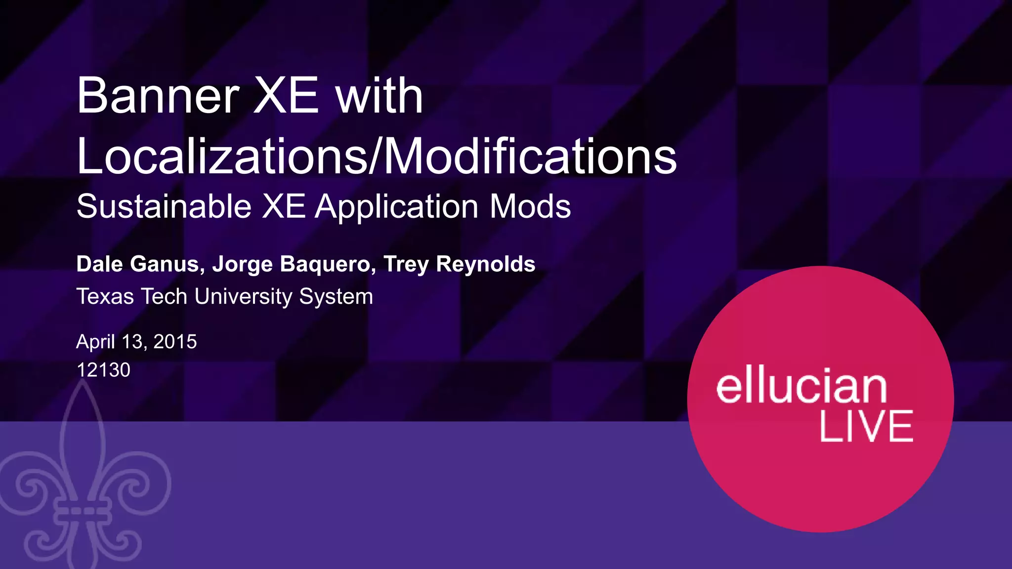 The document discusses Texas Tech University System's approach to sustainable modifications in Banner XE. It outlines their methodology which separates modifications into plugins that can evolve independently of the core code. Examples provided include adding steps to the student registration process and displaying graduation indicators on grade rolls. The methodology is intended to reduce maintenance efforts and allow modifications to work across upgrades.