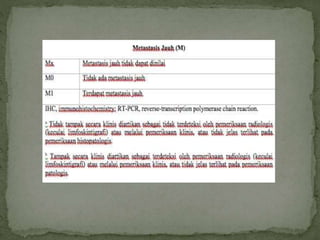 Phylloides tumor adalah tumor payudara jinak atau ganas yang berasal dari jaringan konektif. Diagnosanya didasarkan pada hasil biopsi dan pemeriksaan histologis. Penanganannya berupa eksisi luas tumor untuk mencegah rekurensi lokal atau metastasis. Prognosanya bergantung pada tingkat keganasan tumor, di mana tumor ganas memiliki risiko kematian lebih tinggi akibat metastasis.