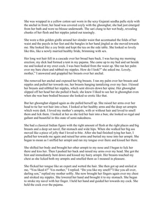 She removed her anchal and exposed her big breasts. I ran my palm over her breasts and