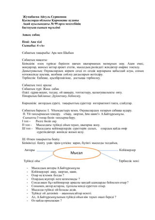 Әдісі: сұрақ-жауап, талдау, ой шақыру, топтастыру, қызығушылықты ояту.