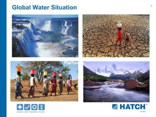 This document discusses water challenges for the mining industry. It notes that water is essential for most mining operations but is becoming increasingly scarce due to population growth, climate change, and other factors. The mining industry accounts for a small percentage of global freshwater use but often operates in water-stressed areas. The document outlines strategies for mining companies to improve integrated water management, reduce impacts, and secure alternative water sources like desalination, in order to sustainably address growing water challenges.