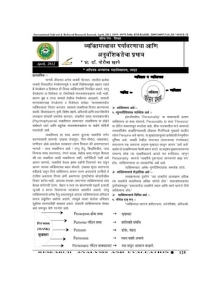 Referred Research Journal, April, 2012. ISSN- 0975-3486, RNI-RAJBIL 2009/30097;VoL.III *ISSUE-31 April, 2012 ¯ÖÏÖßÖÖ×¾Öú :- O;fDRkRo o O;fDRkeRo ´ÖÖÖ¾Öß •Öß¾ÖÖÖŸÖ †Öêú ¾µÖŒŸÖß ³Öê™üŸÖÖŸÖ. ŸµÖÖŸÖᯙ ¯ÖÏŸµÖêú ¾µÖŒŸÖß ×ŸÖ“µÖÖŸÖᯙ ¾ÖêÖôêû¯ÖÖÖ´Öãôûê ¾Ö úÖÆüß ×¾Ö¿ÖêÂÖŸ¾ÖÖ´Öãôûê »ÖÖÖŸÖ ¸üÆüÖŸÖê Æêü ¾ÖêÖôêû¯ÖÖ ¾Ö ×¾Ö¿ÖêÂÖŸÖÖ Æüß ×ŸÖ“µÖÖ ¾µÖÛŒŸÖŸ¾ÖÖ¿Öß ×ÖÖ×›üŸÖ †ÃÖŸÖê. ¯Ö¸ÓüŸÖã ¾ O;fDRkRo ¾ÖêÖôêû¯ÖÖÖ ¾ÖÖ ×¾Ö¿ÖêÂÖŸÖÖ µÖÖ ÖÖê™üß´Ö¬µÖê ´ÖÖÖÃÖ¿ÖÖá֖ÖÖÓÖÖ ¹ý“Öß ÖÖÆüß. O;fDRk ¾ ¾µÖÛŒŸÖ¢¾Ö úÖ¸üÖ ¾ÖéÖ ¾Ö ¤üÖ›ü µÖÖ´Ö¬µÖê ¤êüÖᯙ ¾ÖêÖôêû¯ÖÖÖ †ÖœüôûŸÖÖê. µÖÖÃÖÖšüß ´ÖÖÖÃÖ¿ÖÖÃ¡Ö–Ö ¾ÖêÖôêû¯ÖÖÖ ¾Ö ×¾Ö¿ÖêÂÖŸÖÖ µÖÖ¯ÖêÖÖ '´ÖÖÖÃÖ¿ÖÖáÖßµÖ ¾µÖÛŒŸÖŸ¾ÖÖ“ÖÖ' ×¾Ö“ÖÖ¸ü ú¸üŸÖÖŸÖ. ŸµÖÖ´Ö¬µÖê ¾µÖŒŸÖß“µÖÖ ×¾Ö“ÖÖ¸ü ú¸üµÖÖ“µÖÖ ¾µÖÛŒŸÖ´Ö¢¾Ö †£ÖÔ :- ÃÖ¾ÖµÖß, ×¾Ö“ÖÖ¸ü¯ÖÏú™üÖ, ¾Öé¢Öß, ×¾Ö¿ÖêÂÖ »ÖÖÖê, †×³Ö¹ý“Öß †Ö×Ö Ã¾ÖŸÖ:×¾ÖÂÖµÖß“Öê 1. ¾µÖ㟯֢Öß×¾ÖÂÖµÖú ¿ÖÖÛ²¤üú †£ÖÔ :- ŸÖ¢¾Ö–ÖÖÖ µÖÖÓ“ÖÖÆüß ÃÖ´ÖÖ¾Öê¿Ö ú¸üŸÖÖŸÖ. ¾µÖŒŸÖß“Öê ÃÖ´ÖÖÏ ´ÖÖÖÃÖ¿ÖÖáÖßµÖ ‡ÓÖÏ•Öß´Ö¬Öᯙ 'Personality' µÖÖ ¿Ö²¤üÖÃÖÖšüß †Ö¯ÖÖ (Psychophysical) ¾µÖŒŸÖß´Ö¢¾Ö ÃÖÖ´ÖÖµÖŸÖ: ¾µÖŒŸÖß´Ö¢¾Ö µÖÖ ÃÖÓ–ÖêÖê ¾µÖÛŒŸÖ´Ö¢¾Ö ÆüÖ ¿Ö²¤ü ¾ÖÖ¯Ö¸üŸÖÖê. Personality ÆüÖ ¿Ö²¤ü 'Persona' ÃÖÓ²ÖÖê¬Ö»Öê •ÖÖŸÖê †Ö×Ö ²ÖÆãüŸÖêú ´ÖÖÖÃÖ¿ÖÖá֖ÖÖÓÖÖ µÖÖ ÃÖÓ–ÖêÖê ´ÖÖêׯüÖß µÖÖ »Öò×™üÖ ¿Ö²¤üÖ¯ÖÖÃÖæÖ ²ÖÖ»Öê»ÖÖ †ÖÆê.ü ÖÏßú ÖÖ™üúÖŸÖᯙ ¯ÖÖ¡Öê †Ö¯ÖÖ¯Ö»Öê ‘ÖÖŸÖ»Öê»Öß †ÖÆêü. þֳÖÖ¾Ö×¾Ö¿ÖêÂÖ ¤üÖÖ×¾ÖµÖÖÃÖÖšüß ŸÖÖë›üÖ¾Ö¸ü ×Ö¸ü×Ö¸üÖôêû ´ÖãÖ¾Ö™êü ‘ÖÖ»ÖßŸÖ ¾µÖŒŸÖß´Ö¢¾Ö ÆüÖ ¿Ö²¤ü †Ö¯ÖÖ ¤ãüÃÖ·µÖÖ ¾µÖŒŸÖß“Öê ¾ÖÖÔÖ ŸµÖÖÓÖÖ Persona †ÃÖê ´ÆüÖŸÖ. µÖÖ ´ÖãÖ¾Ö™ü¶ÖÖãÃÖÖ¸ü ¯ÖÏŸµÖêúÖ“Öß ¸ÓüÖ³Öæ´Öß¾Ö¸ü ú¸üµÖÖÃÖÖšüß ¾ÖÖ¯Ö¸üŸÖÖê. ‹ÖÖ¤üÖ ˆÓ“ÖÖ¯Öã¸üÖ, ÖÖê¸üÖ-ÖÖê´Ö™üÖ, ¬Ö›ü¬ÖÖú™ü, ³Öæ×´ÖúÖ †ÃÖê. ¾µÖŒŸÖß ¤êüÖᯙ ÃÖ´ÖÖ•ÖÖŸÖ (ÃÖ´ÖÖ•ÖÖ“µÖÖ ¸ÓüÖ´ÖÓ“ÖÖ¾Ö¸ü) ¯ÖÖÖߤüÖ¸ü ›üÖôûê †ÃÖ»Öê»ÖÖ ¹ý²ÖÖ²Ö¤üÖ¸ü ŸÖ¹ýÖ ×¤üÃÖ»ÖÖ úß †Ö¯ÖÖ“Ö™üúÖ ê ¾ÖÖ¾Ö¸üŸÖÖÖÖ ‹ú ¯ÖÏúÖ¸ü“ÖÖ †¥ü¿µÖ ´ÖãÖ¾Ö™üÖ ‘ÖÖ»ÖæÖ †Ö¯ÖÖ '†ÃÖê †ÃÖê' ´ÆüÖŸÖÖê - úÖµÖ ¾µÖŒŸÖß´Ö¢¾Ö †ÖÆêü ! ¯Ö¸ÓüŸÖã šëüÖæ, ×ú›ü×ú›üߟÖ, •ÖÖ›ü †ÖÆüÖŸÖ Æêü ¤üÖÖ×¾ÖµÖÖ“ÖÖ ÖêÆü´Öß ¯Ö쵅م ú¸üŸÖê. µÖÖ †¥ü¿µÖ ´ÖãÖ¾Ö™ü¶Ö¾Ö¹ýÖ“Ö ê Ø³ÖÖÖ“ÖÖ “Ö´ÖÖ ¾ÖÖ¯Ö¸üÖÖ¸üÖ, ¸ÓüÖÖÖê úÖôûÖ, ²Öê›üÖ»Ö †ÃÖÖ ´ÖÖÖæÃÖ ×¤üÃÖ»ÖÖ î ÃÖÖ´ÖÖµÖ »ÖÖêú ŸµÖÖ ¾µÖŒŸÖß²Ö§ü»Ö“Öê †Ö¯Ö»Öê ´ÖŸÖ ²ÖÖ×¾ÖŸÖÖŸÖ. ´ÆüÖæÖ úß ŸµÖÖ ¾µÖŒŸÖß»ÖÖ úÖÆüß ¾µÖŒŸÖß´Ö¢¾Ö ÖÖÆüß, ¯ÖÃÖÔÖò×»Ö™üß ÖÖÆüß †ÃÖê Personality ´ÆüÖ•Öê '¾µÖŒŸÖß“Öê ¤ãüÃÖ·µÖÖ»ÖÖ •ÖÖÖ¾ÖÖÖ¸êü ²ÖÖÊ ¹ý¯Ö' †Ö¯ÖÖ ´ÆüÖŸÖÖê. ¾µÖŒŸÖß“Öê êú¾Öôû ¯ÖÏ£Ö´Ö ¤ü¿ÖÔÖß ×¤üÃÖÖÖ¸êü ¹ý¯Ö ¯ÖÖÆæüÖ ÆüÖµÖ. ¾µÖÛŒŸÖ´Ö¢¾ÖÖ“ÖÖ ÆüÖ ¾µÖÖ¾ÖÆüÖ׸üú †£ÖÔ †ÖÆêü. ê †Ö¯ÖÖ ŸµÖÖ“µÖÖ ¾µÖÛŒŸÖ´Ö¢Ö¾ÖÖ ²Ö§ü»Ö ²ÖÖê»ÖŸÖÖê. ‹ÖÖªÖ ÃÖã¤ü¸ü †ÃÖÖÖ·µÖÖ Ó ¾µÖÛŒŸÖ´Ö¢¾ÖÖŸÖ †Öêú ÖãÖ¾Öî׿Ö™ü¶ÖÓ“ÖÖ ÃÖ´ÖÖ¾Öê¿Ö ÆüÖŸÖÖê.ê áÖßú›êü ¯ÖÖÆæüÖ ×ŸÖ“Öê ¾µÖÛŒŸÖ´Ö¢¾Ö †Ö¯ÖÖ ˆ¢Ö´Ö †ÃÖ»µÖÖ“Öê šü¸ü×¾ÖŸÖÖê Æêü ¾µÖÛŒŸÖ´Ö¢¾ÖÖ“Öê ÃÖî¨üÖןÖú †£ÖÔ :- Ó šü¸ü×¾ÖŸÖ †ÃÖŸÖÖÖÖ ×ŸÖ“µÖÖ †ÓÖß †ÃÖÖÖ·µÖÖ ÖãÖ¤üÖÂÖÖÓ“ÖÖ £ÖÖê›üÖ¤êüÖß»Ö ê ŸÖ¢¾Ö–ÖÖÖÖ“µÖÖ ¥ü™üßÖê '•µÖÖ ¾µÖŒŸÖß“Öê †ÖŸ´Ö–ÖÖÖ †×¬Öú ×¾Ö“ÖÖ¸ü ú¸üßŸÖ ÖÖÆüß. †Ö¯Ö»µÖÖ ´ÖÖÖ¾Ö¸ü ˆ´Ö™üÖÖ¸üÖ ¾µÖÛŒŸÖ´Ö¢¾ÖÖ“ÖÖ šüÃÖÖ ŸµÖÖ ¾µÖŒŸÖß“Öê ¾µÖŒŸÖß´Ö¢¾Ö †×¬Öú “ÖÖÓÖ»Öê ÆüÖµÖ.' ÃÖ´ÖÖ•Ö¿ÖÖáÖÖ“µÖÖ ê êú¾Öôû ¿Ö¸ü߸üÖ“Öß šêü¾ÖÖ, “ÖêÆü¸üÖ ¾Ö ±úÖ¸ü ŸÖ¸ü ²ÖÖê»ÖµÖÖ“Öß ¯Ö¨üŸÖß ‡ŸµÖÖ¤üß ¥ü™üßúÖêÖÖŸÖæÖ 'ÃÖ´ÖÖ•ÖÖŸÖᯙ ¾µÖŒŸÖß“Öê ãÖÖÖ †Ö×Ö úÖµÖÔ ´ÆüÖ•Öê ן֓Öê •Öã•Ö²Öß ¾Ö ¾Ö¸ü¾Ö¸ü פüÃÖÖÖ·µÖÖ ‘Ö™üúÖÓ¾Ö¸ü †Ö¬ÖÖ׸üŸÖ †ÃÖŸÖÖê. ¯Ö¸ÓüŸÖã ¾µÖÛŒŸÖ´Ö¢¾Ö ÆüÖµÖ.' ê ¾µÖÛŒŸÖ´Ö¢¾ÖÖ“Öê †Öêú ¯Öî»Öæ †ÃÖ»µÖÖ´Öãôûê †Ö¯Ö»ÖÖ ¾µÖÛŒŸÖ´Ö¢¾ÖÖ“ÖÖ †×³Ö¯ÖÏÖµÖ ¾µÖÛŒŸÖ´Ö¢¾ÖÖ“Öê ×¾Ö×¾Ö¬Ö †£ÖÔ :- ±úÖ¸ü“Ö ÃÖÓúã ×“ÖŸÖ †£ÖÖÔ“Ö