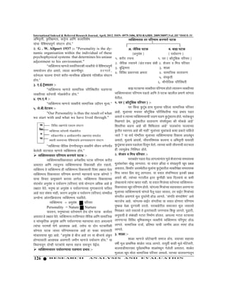 Referred Research Journal, April, 2012. ISSN- 0975-3486, RNI-RAJBIL 2009/30097;VoL.III *ISSUE-31 †×³Ö¾Öé¢Öß, éúןÖÖ´ÖŸÖÖ, úŸÖéŸ¾Ö †Ö×Ö ú»ÖÖ×¾Ö¿ÖêÂÖ Ô ¾µÖÛŒŸÖ´Ö¢Ö¾ÖÖ ¾Ö¸ü ¯Ö׸üÖÖ´Ö ú¸üÖÖ¸êü ‘Ö™üú µÖÖÓ“ÖÖ ¾Öî׿Ö™ü¶¯ÖæÖÔ ÃÖÓ‘Ö™üÖ ÆüÖµÖ." ê 2. G . W. Allport 1937 :- "Personality is the dy- †. •Öî×¾Öú ‘Ö™üú ²Ö. ²ÖÖÊ ‘Ö™üú namic organisation within the individual of these (†Öã¾ÖÓ¿Ö ) ( ¯ÖµÖÖÔ¾Ö¸üÖ ) psychophysical systems that determines his uniaue 1. ¿Ö¸ü߸ü ¸ü“ÖÖÖ 1. ‘Ö¸ü ( úÖî™üÓãײÖú ¯Ö׸üÃÖ¸ü ) adjestment to his environment." 2. •Öî×¾Öú ¸üÃÖÖµÖÖê /†ÓŸÖ:áÖÖ¾Ö ÖÏ£Öß 2. ¿Öê•ÖÖ¸ü ¾Ö ×´Ö¡Ö ¯Ö׸ü¾ÖÖ¸ü Ó "¾µÖÛŒŸÖ´Ö¢¾Ö ´ÆüÖ•Öê þ֯Ö׸üÃÖ¸üÖ¿Öß ¾µÖŒŸÖß“Öê •Öê ¾Öî׿Ö™ü¶¯ÖæÖÔ 3. ²Öãרü´Ö¢ÖÖ 3. ¿ÖÖôûÖ ÃÖ´ÖÖµÖÖê•ÖÖ ÆüÖŸÖ †ÃÖŸÖê, ŸµÖÖ»ÖÖ úÖ¸üÖß³ÖæŸÖ ê šü ¸ ü ÖÖ¸ê ü , 4. ×¾Ö×¾Ö¬Ö ¯ÖÏúÖ¸ü“µÖÖ Ö´ÖŸÖÖ 4. ÃÖÖ´ÖÖוÖú ¾ÖÖŸÖÖ¾Ö¸üÖ ¾ÖŸÖÔÖÖ»ÖÖ “ÖÖ»ÖÖÖ ¤êüÖÖ¸êü ¿Ö¸ü߸ü-´ÖÖÖ×ÃÖú ¯ÖÏ×ÎúµÖÖÓ“Öê ÖןֿÖᯙ ÃÖÓ‘Ö™üÖ 5. ÃÖÓÃéúŸÖß ÆüÖµÖ." ê 6. ³ÖÖîÖÖê×»Öú ¯Ö׸üÛã֟Öß 3. ‹.‡Ô.™ÒüòŒÃÖ»Ö¸ü :- "¾µÖÛŒŸÖ´Ö¢¾Ö ´ÆüÖ•Öê ÃÖÖ´ÖÖוÖú ¯Ö׸üÛã֟ÖßŸÖ ‘Ö›üÖÖ·µÖÖ ²ÖÖÊ ‘Ö™üúÖ“ÖÖ ¾µÖŒŸÖß¾Ö¸ ¯Ö׸üÖÖ´Ö ÆüÖŸÖÖê ŸµÖÖ¾Ö¹ýÖ ¾µÖŒŸÖß“µÖÖ ê ¾µÖŒŸÖß“µÖÖ ¾ÖŸÖÔÖÖ“Öß ÖÖêôûÖ²Öê¸üß•Ö ÆüÖµÖ." ê ¾µÖÛŒŸÖ´Ö¢¾ÖÖ¾Ö¸ü ¯Ö׸üÖÖ´Ö ¯Ö›üŸÖÖê †Ö×Ö ŸÖê ‘Ö™üú ÖÖ»Öᯙ ¯ÖÏ´ÖÖÖê ÃÖÖÓÖŸÖÖ 4. ‹´Ö.‹.´Öê :- µÖêŸÖß»Ö. "¾µÖÛŒŸÖ´Ö¢¾Ö ´ÆüÖ•Öê ¾µÖŒŸÖß“Öê ÃÖÖ´ÖÖוÖú ˆ§ü߯ÖÖ ´Ö滵Ö." 1. ‘Ö¸ü ( úÖî™üÓãײÖú ¯Ö׸üÃÖ¸ü ) :- 5. •Öê.²Öß.¾Öò™üÃÖÖ :- ‘Ö¸ü Øú¾ÖÖ ãú™Óü²Ö ÆüÖ“Ö ´Öã»ÖÖ“ÖÖ ¯Öׯü»ÖÖ ÃÖÖ´ÖÖוÖú ¯Ö׸üÃÖ¸ü ã "Our Personality is thus the result of what †ÖÆêü. ´Öã»ÖÖ“µÖÖ ´ÖÖÖ¾Ö¸ü úÖî™üÓãײÖú ¯Ö׸üÛã֟Öß“ÖÖ ÖÖœü ¯ÖϳÖÖ¾Ö ¯Ö›üŸÖ we start with and what we have lived through." †ÃÖŸÖÖê ¾Ö ŸµÖÖ“µÖÖ ¾µÖÛŒŸÖ´Ö¢¾ÖÖ“Öß •Ö›üÖ ‘Ö›üÖ ãú™ãüÓ²ÖÖŸÖ“Ö ÆüÖŸÖê. ´ÖÖŸÖêú›ãüÖ ê ×´ÖôûÖÖ¸êü ¯ÖÏ´Ö, ãú™ãüÓ²ÖÖŸÖᯙ ¾ÖÖŸÖÖ¾Ö¸üÖ ÃÖÓ‘ÖÂÖÔµÖãŒŸÖ úß ´ÖÖêúôêû †ÖÆêü' ê ¾µÖ ×¾Ö×¾Ö¬Ö »ÖÖÖÖÓ“Öê ‹úÖŸ´Ö ÃÖÓ‘Ö™üÖ ×¿ÖßÖß“ÖÖ ²Ö›üÖÖ †ÖÆêü úß ×¿Ö×£Ö»ÖŸÖÖ †ÖÆêü' ¯ÖÖ»ÖúÖÓÖÖ ¯ÖÖ»µÖÖ“µÖÖ ÛŒŸÖ ¾µÖÛŒŸÖ“µÖÖ ¾ÖŸÖÔÖÖ“Öß ÖÖêôûÖ²Öê¸üß•Ö éúŸÖßŸÖ Ã¾ÖÖ¸üÃµÖ †ÖÆêü úß ÖÖÆüß' ´Öã»ÖÖÓ“µÖÖ “ÖãúÖÓú›êü ú¿ÖÖ ¯ÖÏúÖ¸êü ¯ÖÖׯü»Öê ´Ö •ÖÖŸÖê ? µÖÖ ÃÖ¾ÖÔ ÖÖê™üà¾Ö¸ü ´Öã»ÖÖ“µÖÖ ¾µÖÛŒŸÖ´Ö¢¾ÖÖ“ÖÖ ×¾ÖúÖÃÖ †¾Ö»ÖÓ²ÖæÖ Ã¾ÖßúÖ¸üÖßµÖ ¾Ö †Ã¾ÖßúÖ¸üÖßµÖ »ÖÖÖÖÓ“ÖÖ ÃÖ´ÖŸÖÖê»Ö ¢¾Ö ãÖÖµÖß Ã¾Ö¹ý¯ÖÖ“µÖÖ ¾Öî׿Ö™ü¶ÖÓ“Öê †ÖµÖÃÖÖ¬ÖÖ¸üÖ ÃÖÓ‘Ö™üÖ †ÃÖŸÖÖê. ´Öã»ÖÖ“Öê †Ö¤ü¿ÖÔ, •Öß¾ÖÖ×¾ÖÂÖµÖú ú»¯ÖÖÖ ¾Ö †×³Ö¾Öé¢Öß µÖÖ¾Ö¸üÆüß "¾µÖÛŒŸÖ“µÖÖ •Öî×¾Öú ¤êüÖÖ߯ÖÖÃÖæÖ ¾µÖŒŸÖßÖê •Öß¾ÖÖ •ÖÖê¯ÖµÖÕŸÖ ãú™ãüÓ²ÖÖ“ÖÖ ¯ÖϳÖÖ¾Ö ¯Ö›ü»Öê»ÖÖ ×¤üÃÖæÖ µÖêŸÖÖê. ŸµÖÖ“µÖÖ ³ÖÖ¾Öß •Öß¾ÖÖÖ“Öß ¾ÖÖ™ü“ÖÖ»Ö êú»Öê»Öß ¾ÖÖ™ü“ÖÖ»Ö ´ÆüÖ•Öê ¾µÖÛŒŸÖ´Ö¢¾Ö ÆüÖµÖ." ê Æüß ŸµÖÖ´Öãôûê “Ö ×ÖÛ¿“ÖŸÖ ÆüÖŸÖê. ê ¾µÖÛŒŸÖ´Ö¢¾ÖÖ¾Ö¸ü ¯Ö׸üÖÖ´Ö ú¸üÖÖ¸êü ‘Ö™üú :- 2. ¿Öê•ÖÖ¸ü ¾Ö ×´Ö¡Ö ¯Ö׸ü¾ÖÖ¸ü :- ¾µÖÛŒŸÖ´Ö¢¾ÖÖ×¾ÖúÖÃÖÖ¾Ö¸ü †Öêú×¾Ö¬Ö ‘Ö™üú ¯Ö׸üÖÖ´Ö ú¸üßŸÖ ‘Ö¸üÖ²ÖÖÆêü¸ü ¯Ö›üŸÖÖ µÖê‰ú »ÖÖÖ»µÖÖÖÓŸÖ¸ü ´Öã»Öê ¿Öê•ÖÖ¸ü“µÖÖ ÃÖ´Ö¾ÖµÖÃú †ÃÖŸÖÖŸÖ †Ö×Ö ŸµÖÖŸÖæÖ“Ö ¾µÖÛŒŸÖ´Ö¢¾ÖÖ“ÖÖ ×¾ÖúÖÃÖÆüß ÆüÖŸÖ ¸üÖÆüŸÖÖê. ê ´Öã»ÖÖÓ²Ö¸üÖ²Ö¸ü Öêôûæ »ÖÖÖŸÖÖŸÖ. µÖÖ ¾ÖµÖÖŸÖ Îúß›üÖ ¾Ö ÃÖÓ‘Ö¯ÖϾÖé¢Öß Öæ¯Ö ¯ÖϲÖôû ê ¾µÖÛŒŸÖ¢¾Ö ŸÖê ¾µÖÛŒŸÖ´Ö¢¾Ö Æüß ¾µÖÛŒŸÖ´Ö¢¾Ö ×¾ÖúÖÃÖÖ“Öß ×¤ü¿ÖÖ »ÖÖÖŸÖ ‘ÖêŸÖÖ †ÃÖŸÖÖŸÖ. ×ú¿ÖÖê¸ü †¾ÖãÖêŸÖᯙ ´Öã»ÖÖÓÖÖ ãú™ãüÓ²ÖÖŸÖᯙ ¾µÖŒŸÖ߯ÖêÖÖ ÃÖ´Ö¾ÖµÖÃú ¾µÖÛŒŸÖ´Ö¢¾Ö ×¾ÖúÖÃÖÖ¾Ö¸ü ¯Ö׸üÖÖ´Ö ú¸üÖÖ¸êü ´ÖÆü¢¾ÖÖ“Öê ‘Ö™üú úÖêÖŸÖê ? ×´Ö¡Ö •ÖÖÃŸÖ ×¯Ö쵅 ¾ÖÖ™æü »ÖÖÖŸÖÖŸÖ. µÖÖ ¾ÖµÖÖŸÖ ÃÖÓ‘Ö×ÖšüŸÖÖ ‡ŸÖúß ¯ÖϲÖôû µÖÖ“ÖÖ ×¾Ö“ÖÖ¸ü ¯ÖÏÖ´ÖãµÖÖÖê ú¸üÖ¾ÖÖ »ÖÖÖê»Ö. ¾µÖÛŒŸÖ´Ö¢¾Ö ×¾ÖúÖÃÖÖ“µÖÖ †ÃÖŸÖê úß, ŸµÖÖÓ“µÖÖ Ö™üÖŸÖᯙ ‡ŸÖ¸ü ãúÖ߯üß ¡ÖÖÃÖ ×¤ü»µÖÖ“Öê ¾ÖÖ ú´Öß ÃÖÓ¤ü³ÖÖÔŸÖ †Öã¾ÖÓ¿Ö ¾Ö ¯ÖµÖÖÔ¾Ö¸üÖü (¯Ö׸üÃÖ¸ü) µÖÖÓ“Öê µ