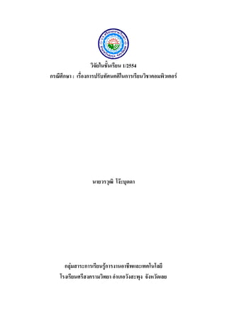 เรื่องการปรับทัศนคติในการเรียนวิชาคอมพิวเตอร นายวรวุฒิ โงะบุดดา กลุมสาระการเรียนรูการงานอาชีพและเทคโนโลยี โรงเรียนศรีสงครามวิทยา อําเภอวังสะพุง จังหวัดเลย