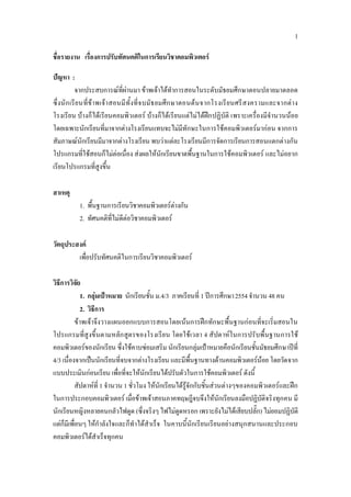 1 ชื่อรายงาน เรื่องการปรับทัศนคติในการเรียนวิชาคอมพิวเตอร ปญหา :