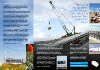 The Cleveleys Promenade project in Lancashire, England transformed over 2 miles of coastline through the construction of new sea defenses and enhancements to the promenade. Key aspects included a cafe, water play area, helical turbines to generate renewable energy, and protection for over 7,600 local properties from flooding risks. The multi-million pound project received 17 awards for its environmental and community benefits. Future phases will continue upgrading remaining sections to complete the revitalization of Cleveleys seafront.