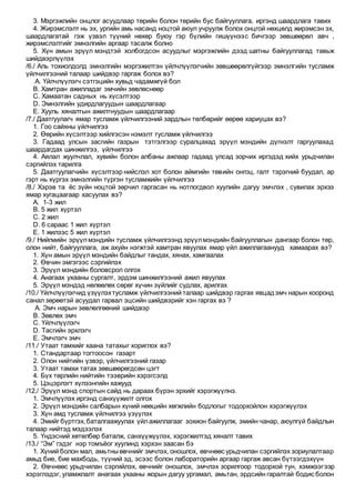 гэсэн дугаартай бөгөөд Зөвхөн 1 зөв хариуг сонгоно.
