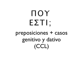 ! ! !! !! ! ! ! ! ! ! ! ! ! ! ! ! ! ! ! ! ! ! ! ! ! ! ! ! ! ! ! ! ! ! ! ! !! ἐν τῇ θαλάσσῃ τὸ πλοῖον ἐστί ! %!&! %!! ! !%%%%%%!! ! ! ! %%% ! ! ! ! ! ! ! ! '! ! ! (! !)! !! ! ! &! ! ! &! ! ! &! ! ! ἐν τῷ πλοίῳ ὁ Ὀδυσσεύς ἐστι ἐστί = está