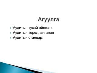 Aудитын тухай ойлголт, мөн чанар PPTX