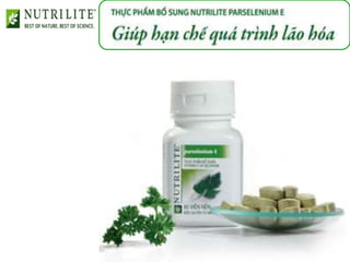 Tài liệu đề cập đến chế độ ăn uống không lành mạnh, bao gồm thực phẩm nhiều chất béo, chất bảo quản và hóa chất, dẫn đến các bệnh lý như tiểu đường, cao huyết áp và ung thư. Nó cũng giới thiệu về sản phẩm dinh dưỡng Nutrilite và các thực phẩm bổ sung giúp tăng cường sức khỏe, bảo vệ gan và cải thiện hệ tiêu hóa. Các thành phần bổ sung như vitamin, khoáng chất và protein góp phần vào sự phát triển và sức khỏe tổng thể của cơ thể.