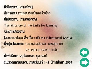 โครงงานคอมพิวเตอร์สื่อการเรียนรู้โครงสร้างโลก