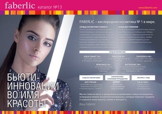 В новом каталоге Faberlic представлена коллекция «космик» с акцией, где участники могут выиграть поездку в Токио и разные подарки, включая парфюмерные наборы и косметические средства для ухода по типам кожи. Также подробно описаны уникальные кислородные комплексы и новые косметические линии, разработанные для удовлетворения потребностей разных возрастных групп. Каталог включает рекомендации по продуктам, последние тренды и звездные интервью.