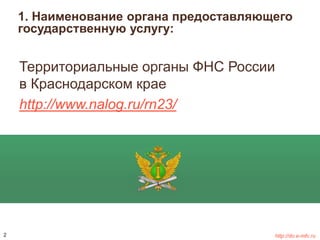 Документ регламентирует процесс государственной регистрации юридических лиц и индивидуальных предпринимателей в Краснодарском крае. Содержит информацию о необходимых документах, размере государственной пошлины и правовых основаниях, а также основаниях для отказа в регистрации. Общий срок предоставления услуги составляет 5 рабочих дней.
