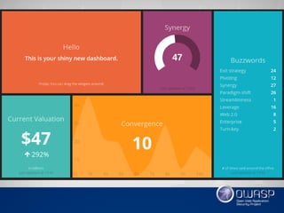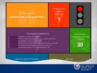Документ описывает разработку дашборда для мониторинга событий информационной безопасности, направленного на анализ состояния безопасности в компании с использованием удобных виджетов и интеграций. Основные функции включают мониторинг уязвимостей, аудит безопасности и динамику активностей, а также возможность отслеживания внешних факторов, таких как курс рубля. Разработчик делится предложениями по архитектуре и используемым технологиям, включая Python и HTTP API.