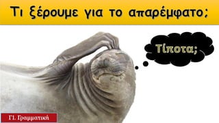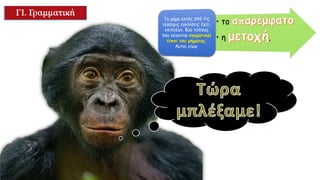 Similar to Σχηματισμός του Απαρεμφάτου στην Ε.Φ. - Βασικές συντακτικές χρήσεις του απαρεμφάτου. Ειδικό και τελικό απαρέμφατο. Εν. 13 Αρχαίων Α΄ Γυμνασίου
