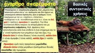 απαρέμφατο και παρουσιάζει τις συντακτικές