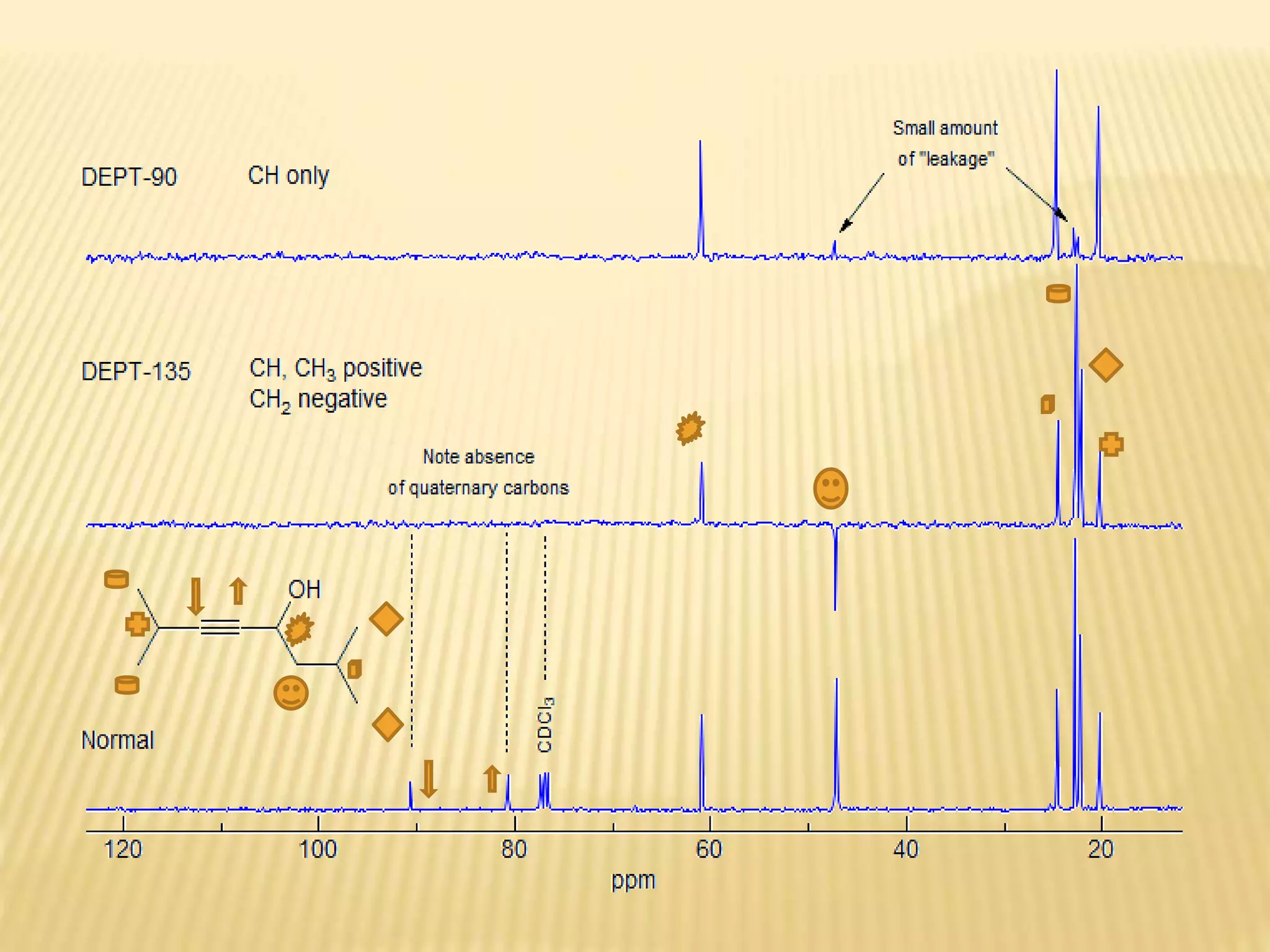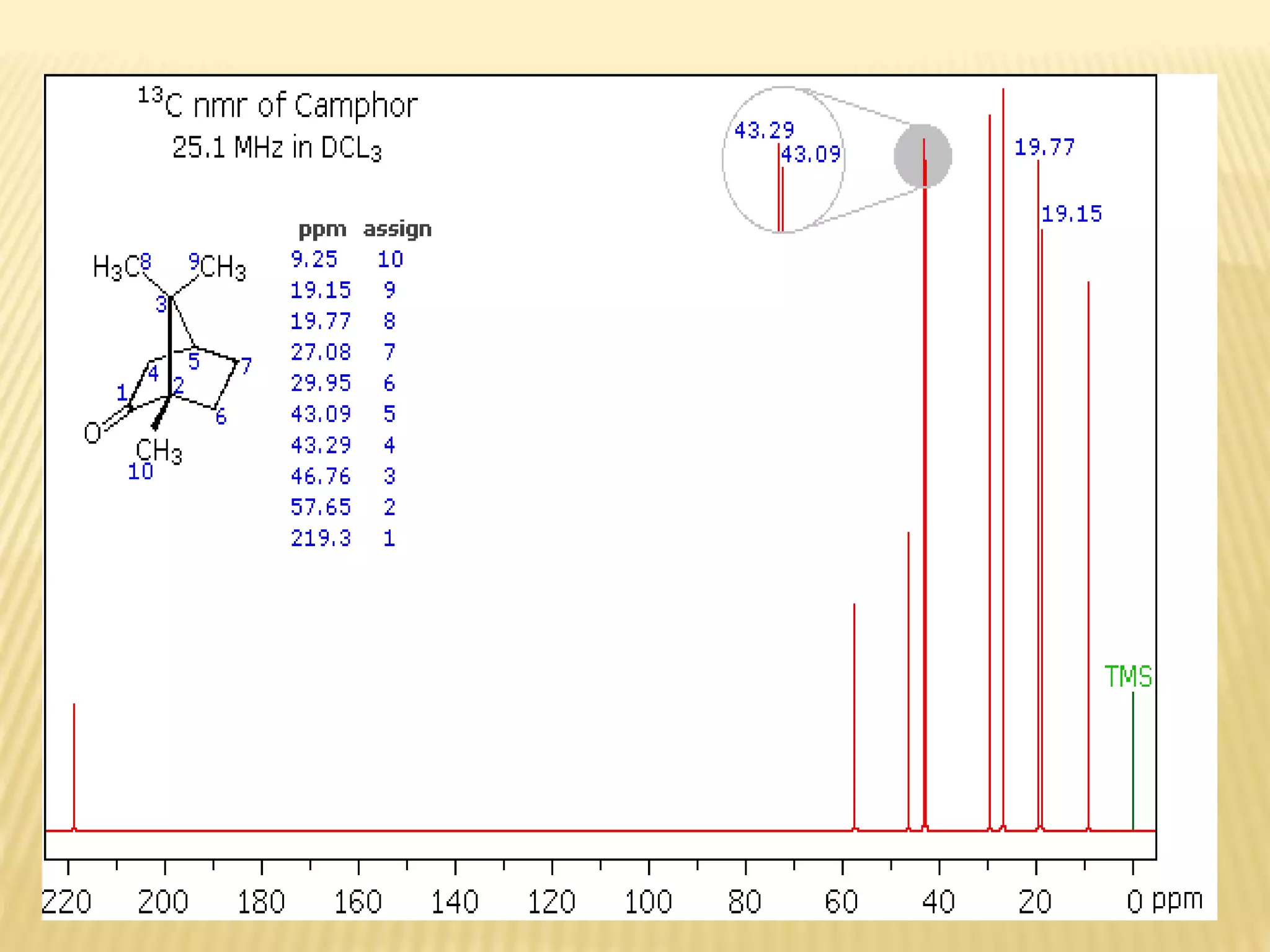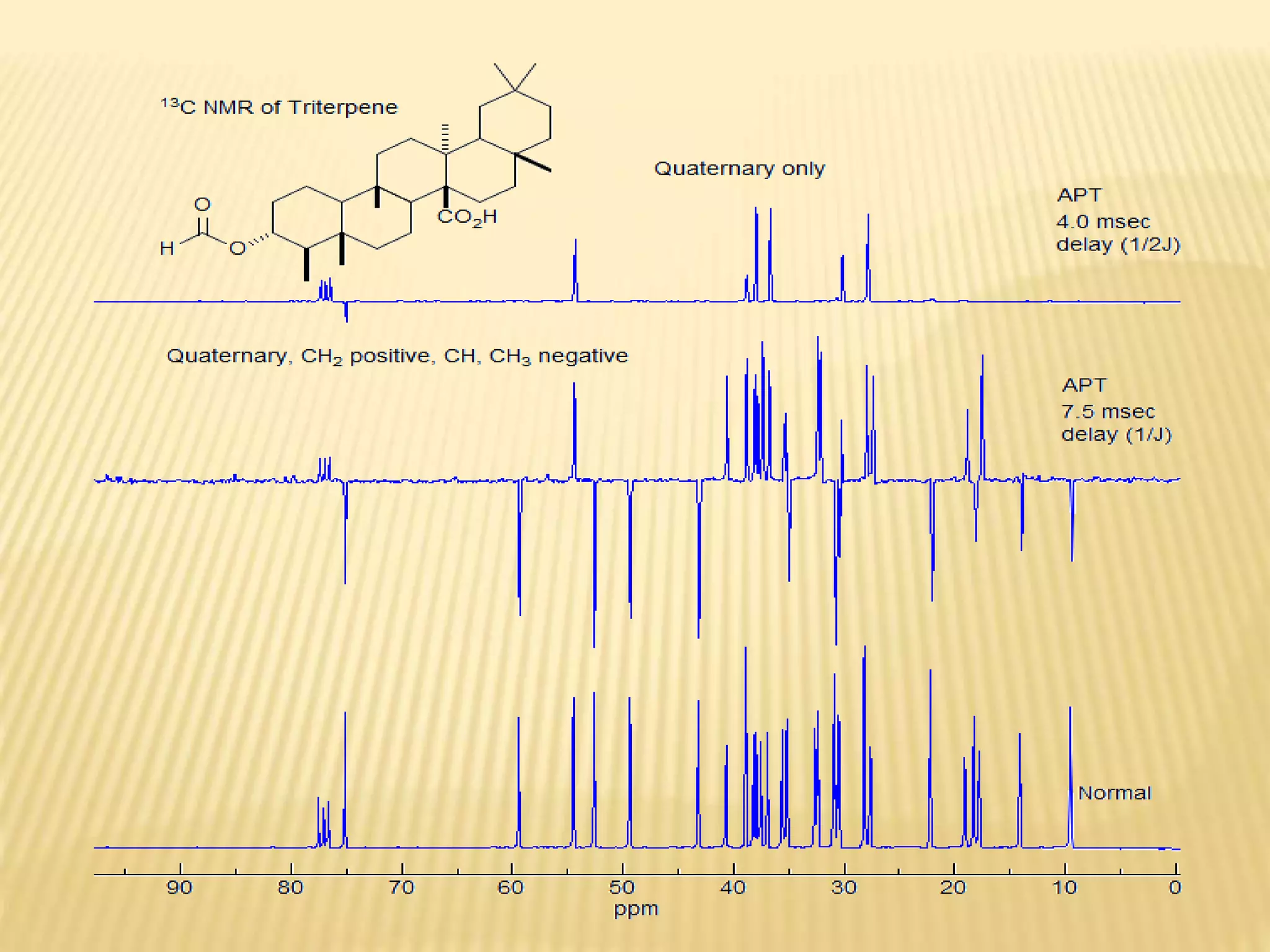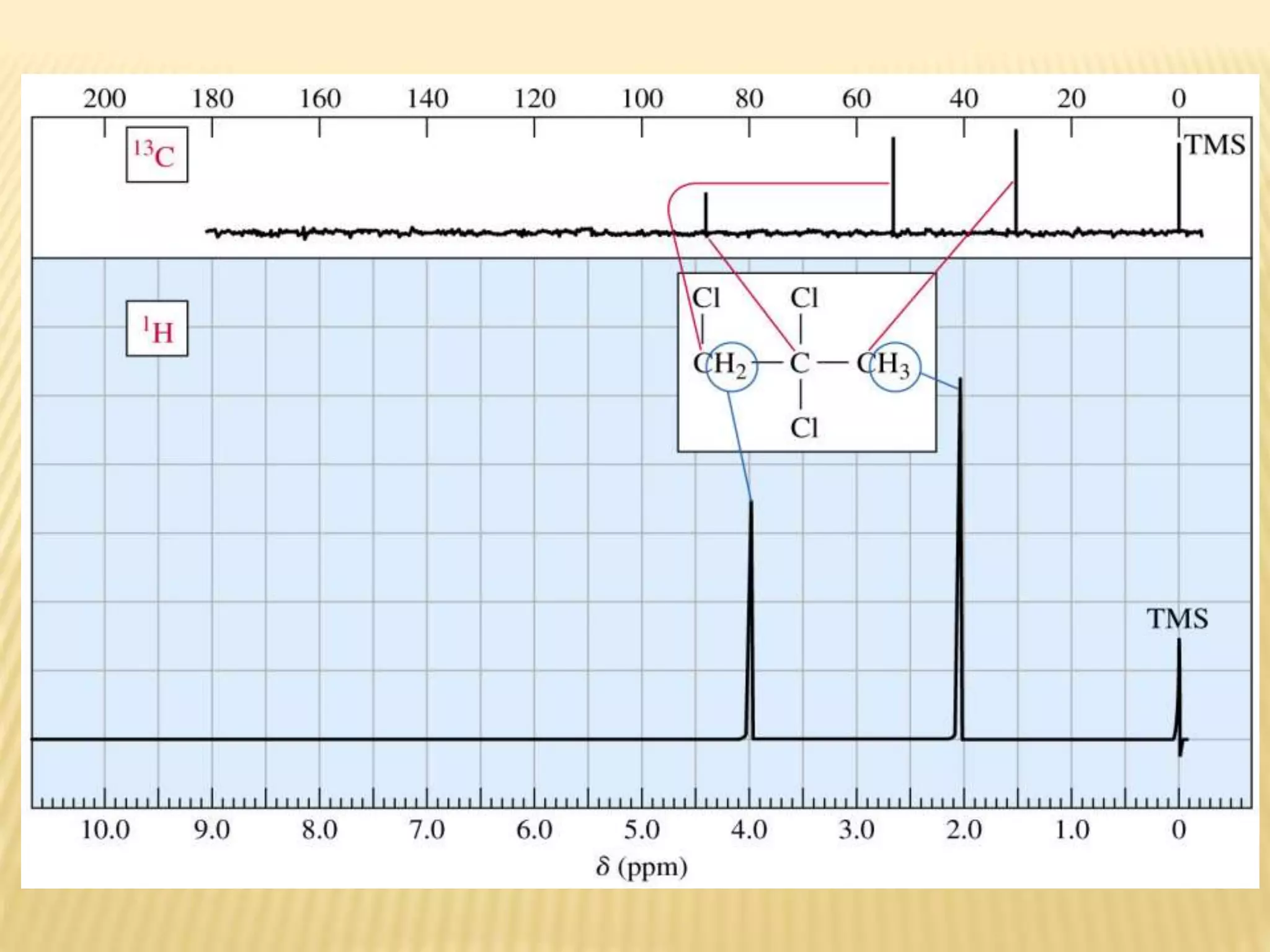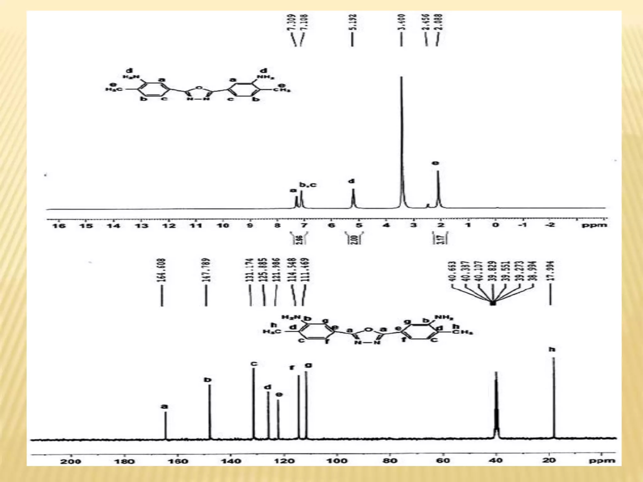 13C-NMR spectroscopy provides information about carbon atoms in organic compounds. It works by applying a strong magnetic field to excite carbon-13 nuclei, which make up about 1% of naturally occurring carbon. The document discusses several key aspects of 13C-NMR including: principles of NMR spectroscopy; chemical shifts and peak assignments; coupling patterns; techniques to overcome low carbon abundance like signal averaging and Fourier transform; and decoupling methods to simplify spectra. Examples are provided to illustrate predicting chemical shifts and interpreting 13C-NMR spectra.