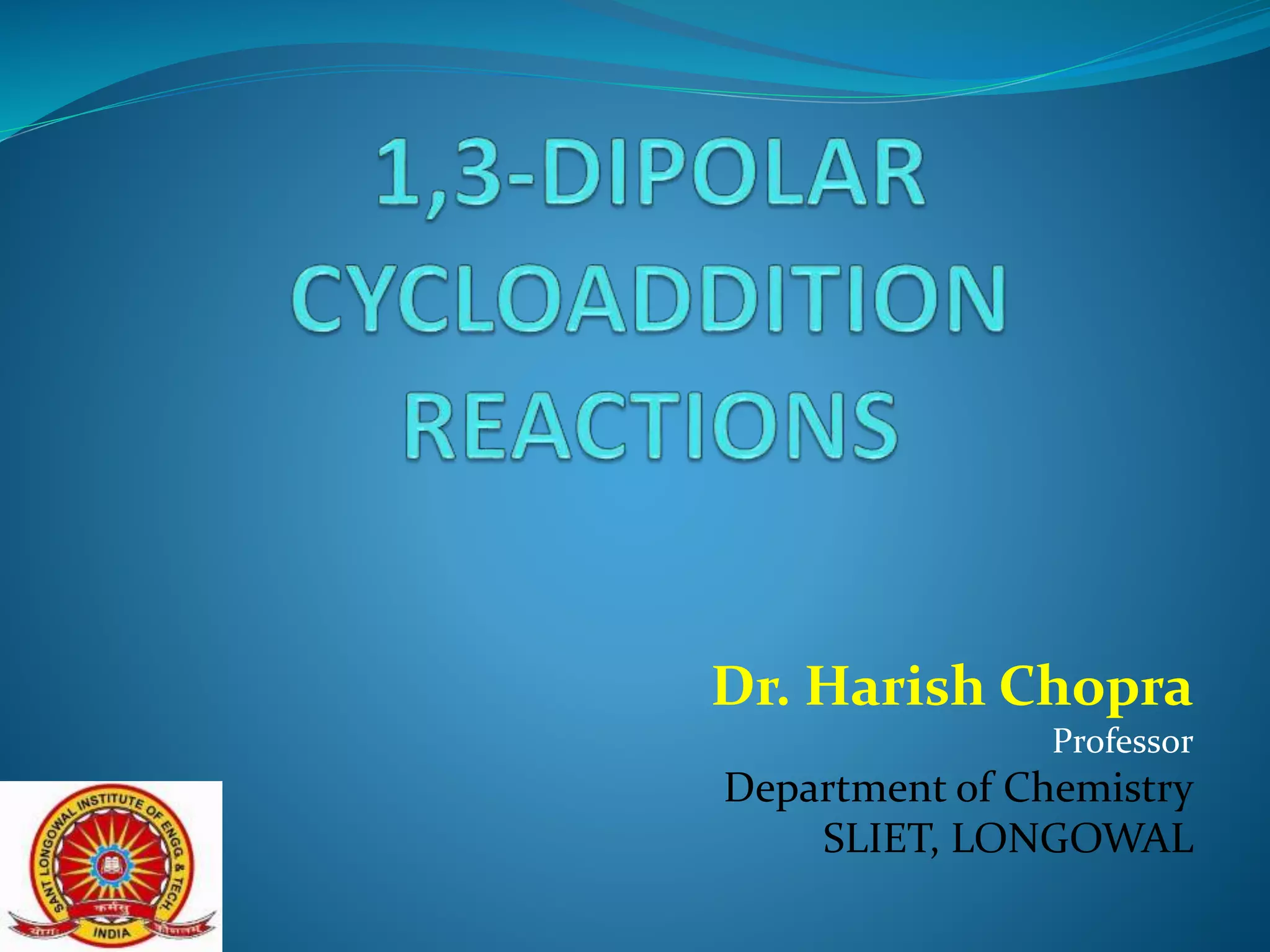 The document discusses 1,3-dipolar cycloaddition reactions, which involve a 1,3-dipole reacting with a dipolarophile to form a 5-membered heterocyclic ring. Key points include:
