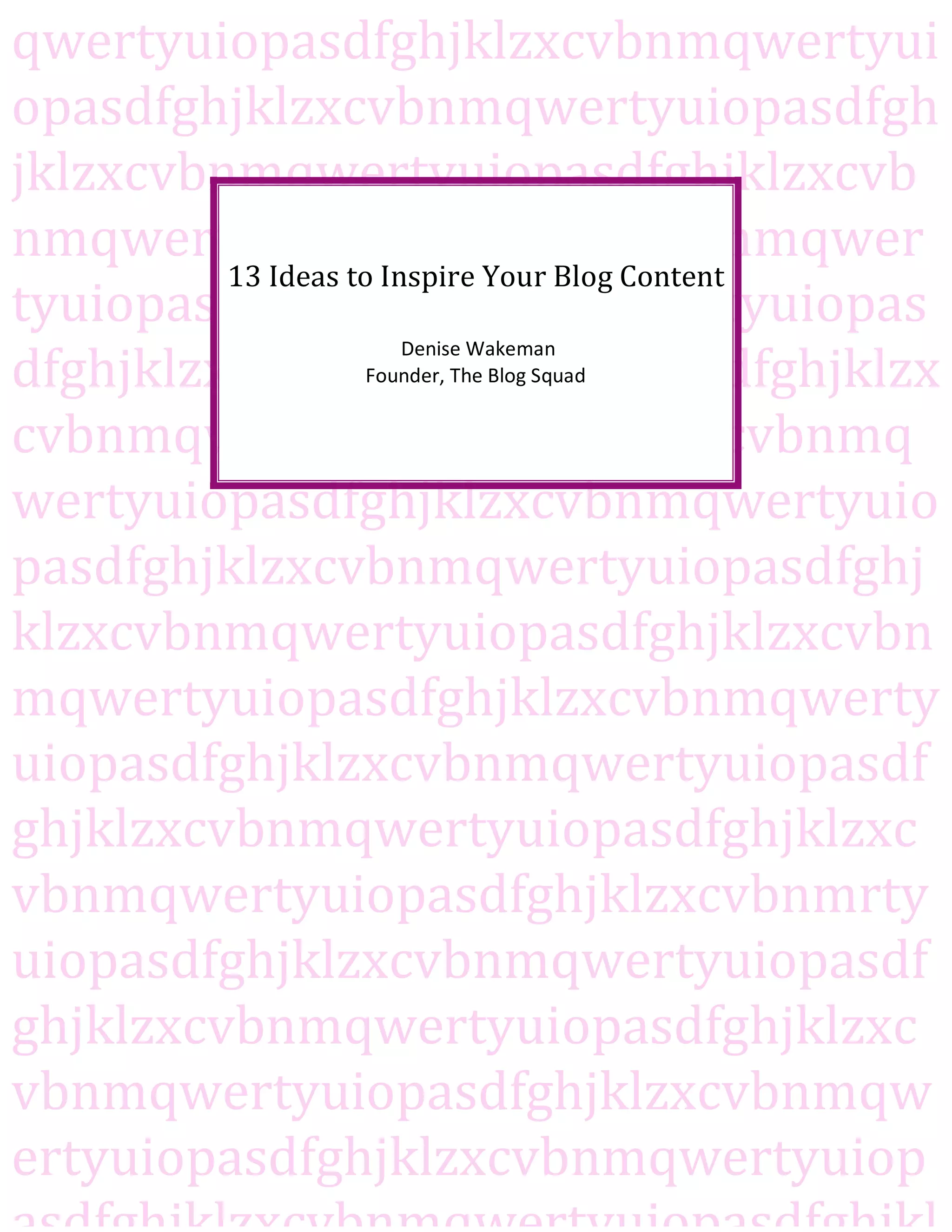 The document provides 13 ideas for blog content inspiration, such as setting up Google Alerts, searching blog directories, subscribing to influential blogs, sharing content from other blogs, posting polls, announcing products/services, sharing tips, using categories, asking readers questions, inviting guest authors, developing awareness of content ideas, writing top 10 lists, and referring to classics in the field. The overall goal is to help bloggers consistently generate fresh, engaging content.