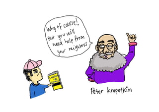 The document discusses open design and how it is more than just a new way to create products. Open design changes relationships between people who make, use, and maintain objects. It advocates for small, local, connected, and open processes. The author argues that openness is important for commercial, cultural, and survival reasons.
