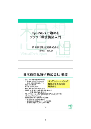 本セッションでは、OpenStackの基本的な導入方法について分かりやすく解説します。