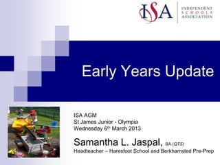 The document provides an overview of the Early Years Foundation Stage (EYFS) framework, emphasizing its goals for quality education, safeguarding, and equal opportunities in early childhood settings. It details requirements for learning and development areas, assessment procedures, and the importance of staff supervision and involvement of parents in children's home learning. Additionally, the document outlines safeguarding measures and recent policy changes aimed at enhancing children's welfare and supporting effective teaching practices.