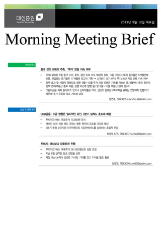 정책 변화(부동산 증자 허용, 은행 우선주 발행 등) 및 9월~10월 부동산 판매 성수기