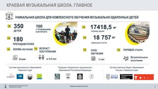 Краевая музыкальная школа в Перми предлагает уникальную модель комплексного музыкального образования для одаренных детей с разнообразными учебными программами и известными педагогами. Школа оснащена современными учебными помещениями и интернатом, а также включает концертно-репетиционный комплекс и спортивные залы. В 2024-2025 учебном году планируется набор новых студентов с акцентом на творческое развитие и высокую профессиональную подготовку.