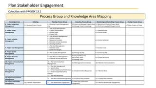 The process of Plan Stakeholder Engagement involves developing approaches to engage project stakeholders based on their needs and impact. Key inputs include the project charter, management plans, and documents like logs and registers. Tools like meetings, expert judgment, and data analysis techniques are used. The main output is the stakeholder engagement plan, which identifies strategies to effectively involve stakeholders in decision making and project execution.