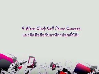 แนวคิดมือถือกับนาฬิกาปลุกตั้งโต๊ะ (Alarm ClockCell Phone Concept) แนวคิดโทรศัพท์มือถือนาฬิกาปลุกตั้งโต๊ะ Sony Ericsson รูปทรงคล้ายนาฬิกาปลุกตั้งโต๊ะ มองเห็นเวลาชัดเจนด้วยรูปแบบนาฬิกาดิจิตอลขนาดใหญ่มีเครื่องเล่น Walkman, ติดกล้องถ่ายรูป และใช้พลังงานจากแบตเตอรี่ขนาด AAA 2 ก้อน - 16.