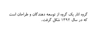 در این فایل، عناوین، اسکرین شات ها، و توضیحات مربوط به پروژه هایی که ظرف 4 سال گذشته در قالب گروه نرم افزاری انار، انجام شده اند، مستندسازی شده اند. در صورت هر گونه سوالی به dmtbox.com مراجعه کنید.