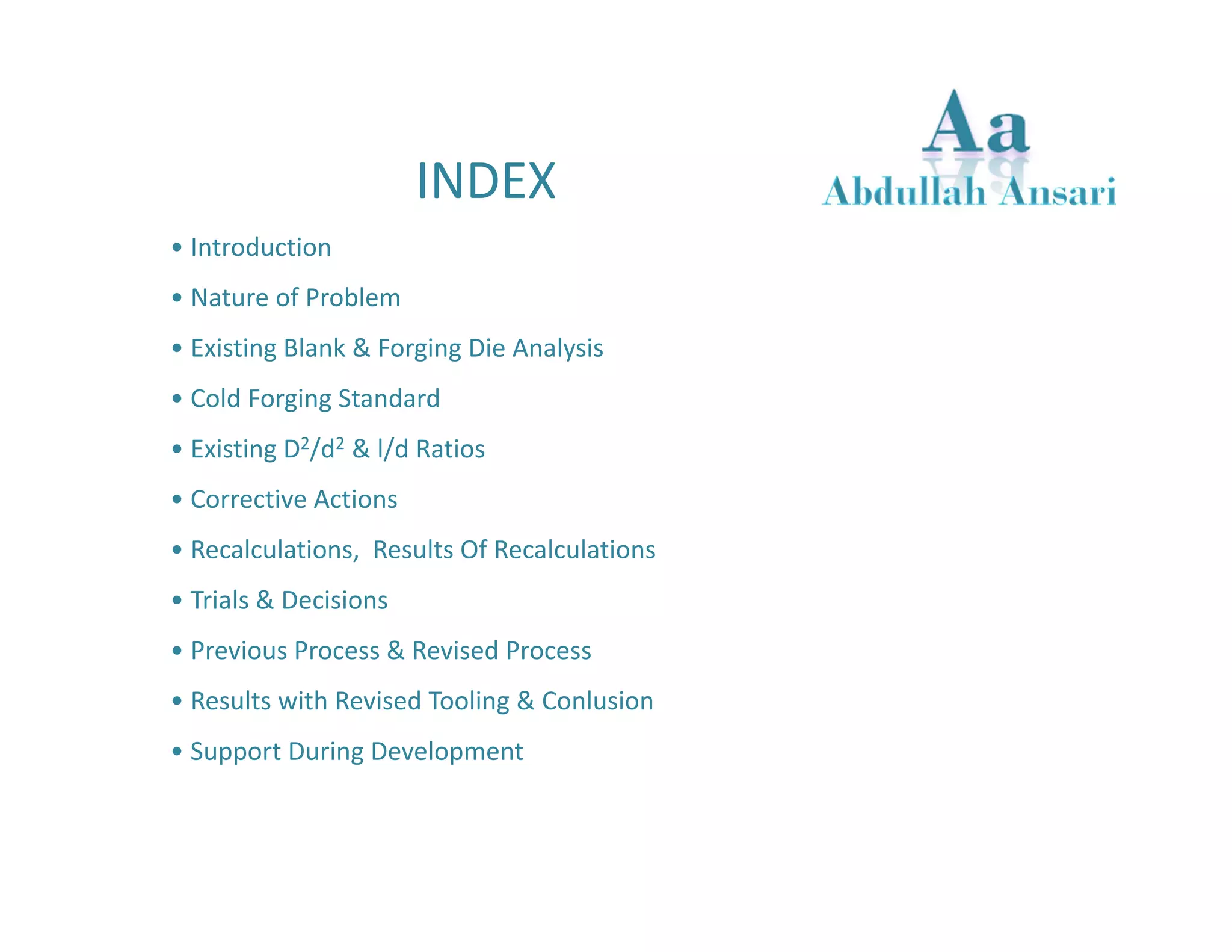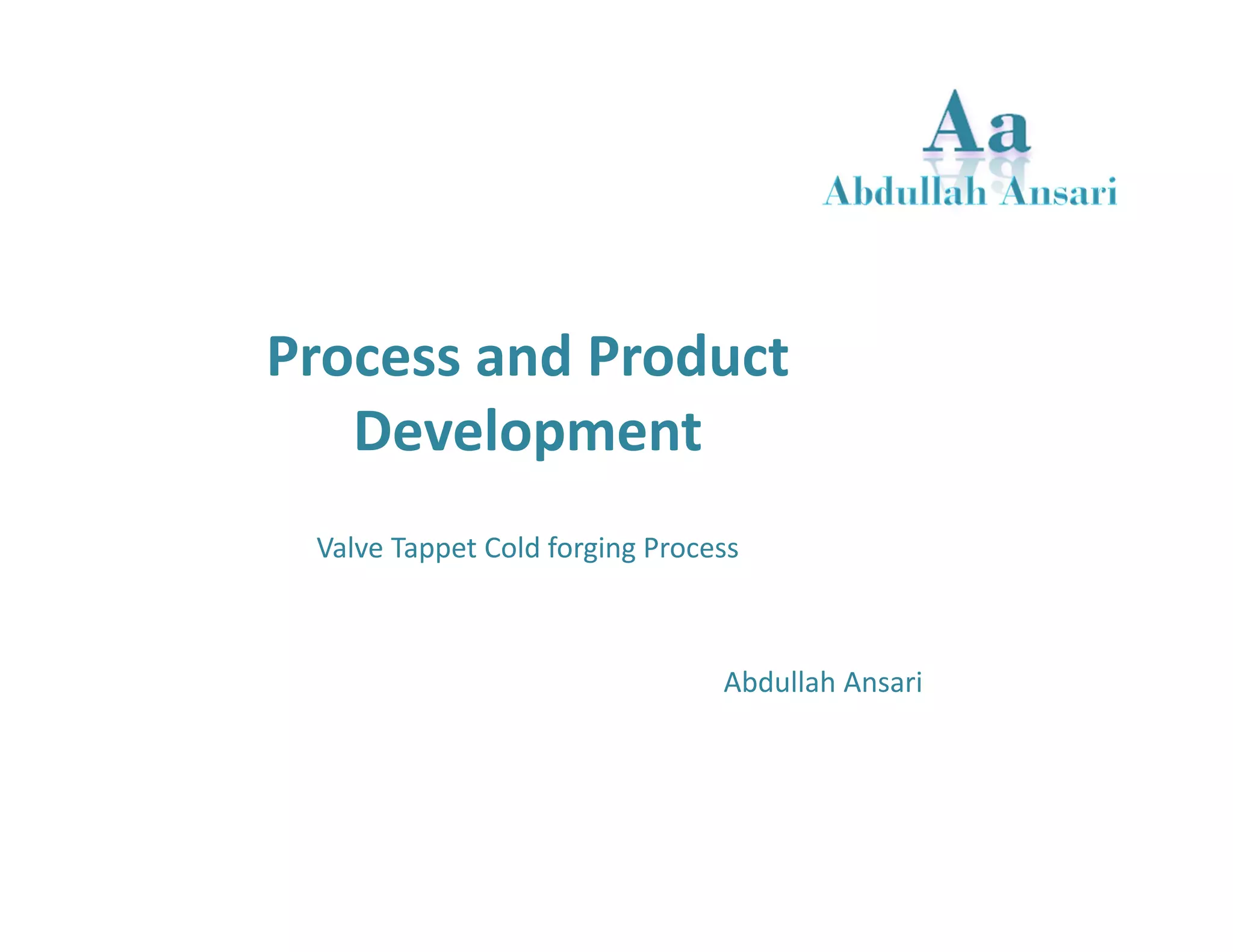 The document discusses redesigning the cold forging process and tooling for producing a valve tappet part. The original single-stage process resulted in inconsistent and excessive head offsetting. Analyzing the process found the D2/d2 and l/d ratios exceeded standards. Recalculations determined a two-stage process with an intermediate stepped blank was needed. Trials with new tooling produced satisfactory results with low, consistent head offsetting. Implementation of the redesigned two-stage process and tooling solved the issues, improved dimensions consistency, reduced setup time and waste.