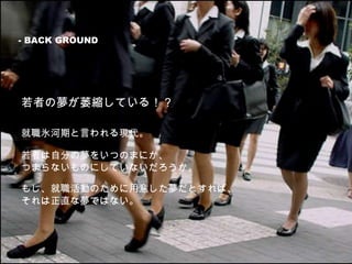 13e9c0a398 1. 2. 3. 4. 「自分の夢に書きかえろ。」 = 書きかえられるペン - COMMUNICATION OBJECTIVE - OVER VIEW PILOT の新卒採用活動で「自分の夢に書きかえろ。」キャンペーンを実施。 送り返すことが パイロット社の 就職試験にもなっている。 PILOT 社の新卒採用に WEB エントリーをすると、 自宅に、すでに印刷された(イケてない) 『あなたの夢』 と フリクションボール が郵送されてくる。 それを「私の夢はこんなんじゃない!」と フリクションボールで 『自分の夢』 に書きかえて、 5. パイロット社の新卒採用に WEB でエントリーすると、 すでに印刷された(イケてない) 『あなたの夢』 と フリクションボールが自宅に送られてくる。 ※ ES の文字はフリクションボールインクで印刷。 PILOT 社によるとプリンタ用フリクションインクは現在研究開発中とのこと。 - CAMPAGIN FLOW ① 6. 7. 8. - PR 店頭のサイネージでは、 既に送られてきたエントリー者の夢をスライドショーで公開する。 - POP 全就職活動生とのコミュニケーション (⇒ PILOT 社に未エントリーの学生への導線の場に) 店頭の試し書きメモパッドで同様の施策を実施 “ 書きかえる” ことを体験してもらう。 店頭のサイネージでは、 既に送られてきたエントリー者の夢を スライドショーで公開する。 9. キャンペーンメリット ① 最もバイラル性の高いターゲットへのコミュニケーション 近年、就職活動生のスマートフォンと SNS の活用頻度 (※) は目を見張るものがある。 敢えてターゲットを彼らに絞ることで、彼ら特有のスピード感あるバイラル効果により、 利便性の訴求、販促が期待できる。 ※ 都内の学生の半数以上が就職活動にスマートフォンを使用(日経 HR の調査) ② パイロット社のコーポレートブランディング “ 夢のある学生”、“正直な学生” の募集は、 パイロット社として今の就職活動(社会)へのメッセージもなる。 - 実現への課題 プリンタ用フリクションインクの開発と印刷。 ※ PILOT 社に直接問い合わせたところ、現在研究開発中とのこと 。 10.