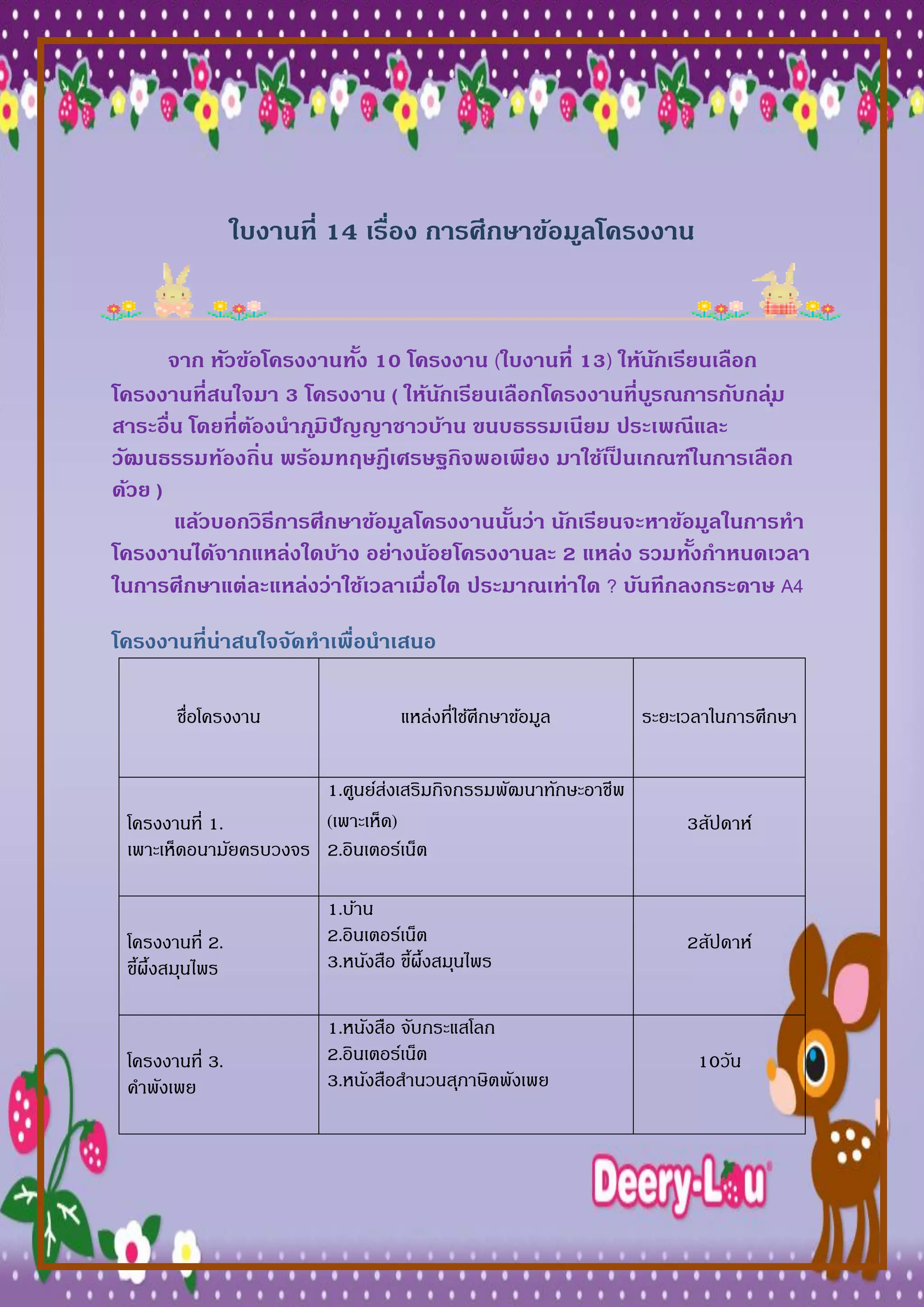 ใบงานที่ 14 เรื่อง การศึกษาข้อมูลโครงงาน