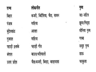 बंगाल में - बाउल और भशतयाली लोकगीत प्रशसद् घ है।