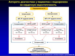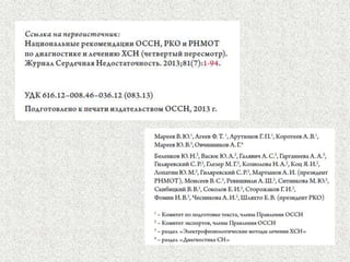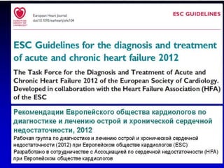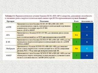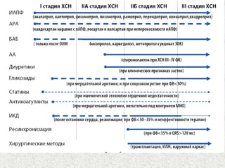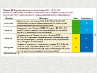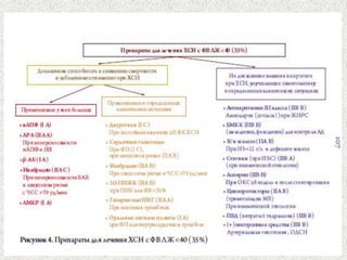 Документ представляет лекцию о хронической сердечной недостаточности (ХСН), в которой рассматриваются ее определение, этиология, диагностика, принципы лечения и профилактики. Упоминается актуальность проблемы, эпидемиология и описываются клинические проявления заболевания, а также методы лечения, включая медикаментозную терапию и диетические рекомендации. Лекция направлена на повышение квалификации врачей-курсантов и важность регулярного контроля за пациентами с ХСН.
