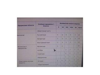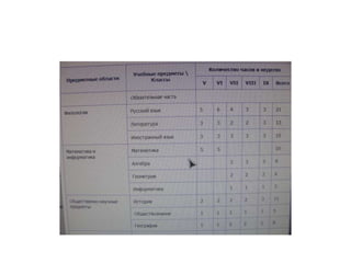 Документ рассматривает особенности проектирования учебного плана для основной ступени общего образования в рамках ФГОС. Основное внимание уделяется базисному учебному плану как механизму реализации стандартов, гарантирующим соответствие обязательным требованиям и учет интересов участников образовательного процесса. Важными аспектами являются различные предметные области, объем учебной нагрузки и особенности проектирования, связанные с санитарными требованиями и предпрофильной подготовкой.