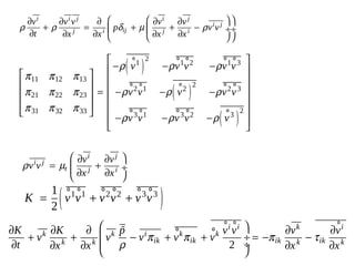 Документ представляет собой лекцию, в которой рассматриваются аспекты турбулентности и горения, включая уравнения и модели, такие как k-ε модель. Обсуждаются различные формулы, связанные с уравнениями движения и переноса, а также аналитические подходы к моделированию химических реакций и тепловых процессов в горении. Включены ссылки на исследования и работы, касающиеся детонации и других аспектов горения.