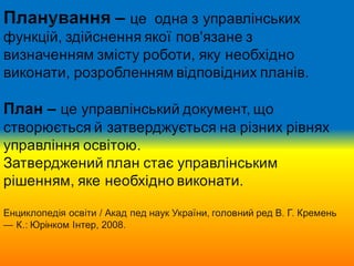 передусім – планування роботи школи.