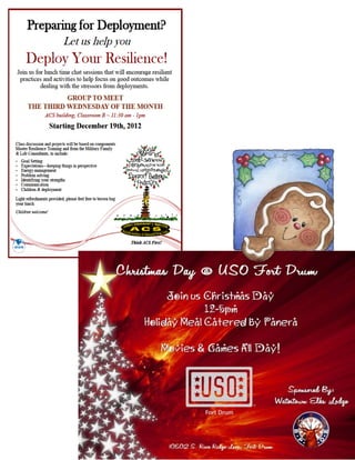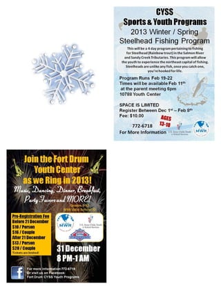 The document provides information about upcoming events in December and January at Fort Drum including: