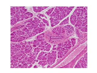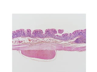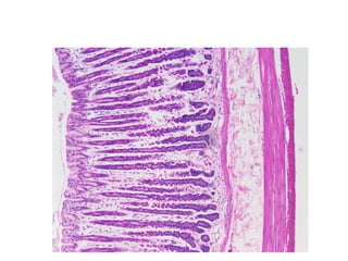 The document summarizes the histology and functions of the digestive system. It begins by introducing the main components of the digestive tract and accessory organs. It then describes the four main layers of the digestive tract lining (mucosa, submucosa, muscularis externa, serosa) and the histological differences between regions. Movement of digestive materials is enabled by two types of muscle contractions - peristalsis which propels materials forward, and segmentation which churns and mixes materials. Accessory structures like mesenteries, salivary glands, and tongue are also overviewed.