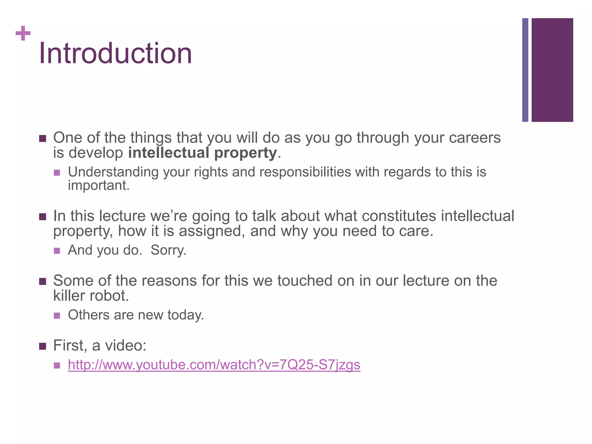 The document provides an overview of intellectual property (IP), focusing on ownership and rights related to work, including copyright, trademarks, and patents. It discusses the complexities of IP ownership, particularly in relation to derivative works and the legal implications of infringement. Additionally, it highlights the importance of properly managing and protecting IP throughout various contexts, including specific legal cases like Apple vs. Apple.