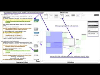 • 이 연구에서는디자이너가 시나리오를 구조화하고 여러 시나리오, 태그, UI를 구성하는 것을 도와주는